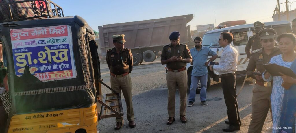 चेकिंग अभियान के दौरान 21 वाहनों के विरूद्ध नो पार्किंग के उपयोग में की गई चालान की कार्यवाही जनपद के विभिन्न मार्गों पर नो-पार्किंग एवं मुख्य मार्ग के किनारे खड़ी वाहनों की मिल रही शिकायतों का संज्ञान लेते हुए पुलिस एवं परिवहन विभाग द्वारा ऐसे वाहनों के विरुद्ध संयुक्त चेकिंग अभियान चलाया गया। जिसमें क्षेत्राधिकारी यातायात विधि भूषण मौर्य, सहायक संभागीय परिवहन अधिकारी वीरेंद्र सिंह, थानाध्यक्ष सुनगढ़ी एवं यातायात निरीक्षक द्वारा असम चौराहे से टाइगर चौराहे तक मार्ग के किनारे खड़े पाए गए 12 वाहनों के चालान किये गए, पीलीभीत पूरनपुर मार्ग पर तीन वाहनों के चालान किए गए तथा पीलीभीत बीसलपुर मार्ग पर नो पार्किंग क्षेत्र में खड़े 6 वाहनों के विरुद्ध चालान की कार्रवाई की गई। क्षेत्राधिकार यातायात एवं एआरटीओ द्वारा इन मार्गाे के दोनों तरफ दुकान, वर्कशॉप इत्यादि संचालित कर रहे दुकान स्वामियों को चेतावनी दी गई कि अपनी दुकानों के आगे किसी प्रकार का वाहन खड़ा ना होने दें। ऐसा पाए जाने पर पुनः कार्रवाई अमल में लाई जाएगी साथ ही अतिक्रमण किए जाने के अभियोग में दुकानदारों पर भी कार्यवाही कराई जाएगी। इस प्रकार आज पुलिस में परिवहन विभाग द्वारा चलाए गए संयुक्त अभियान में 21 वाहनों के विरुद्ध नो पार्किंग के उपयोग में चालान की कार्रवाई की गई